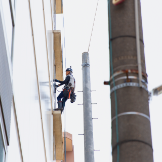 高所作業車や、ロープ作業、仮設足場等で対応致します。