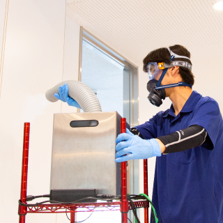 洗浄効果のある加速化過酸化水素(ハイプロックスアクセル)による拭き上げ作業を